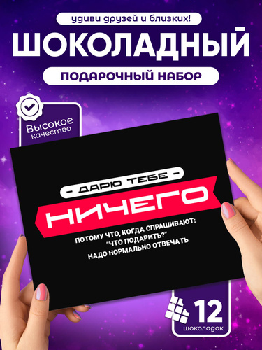 Подарочный набор шоколада "Ничего". Сюрприз с юмором друзьям на день рождения