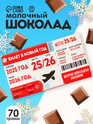 Сладкий подарок шоколад молочный "Билет в новый год" / подарок с приколом 70 г