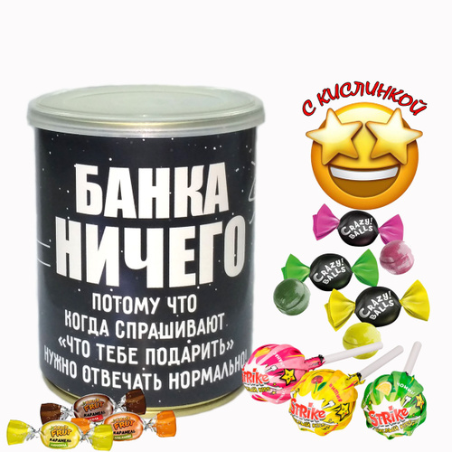 Сюрприз-бокс кондитерский / Набор конфет-карамель с кислинкой "Банка ничего", прикольный шуточный подарок с юмором 100 г. / Вкусные подарки