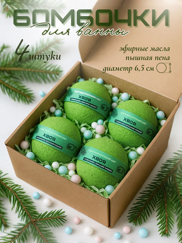 Бомбочки для ванны. Набор бурлящих шаров. Хвоя