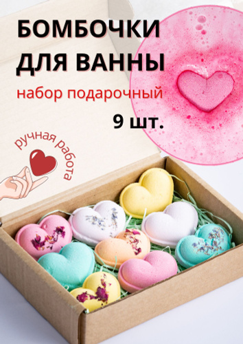 Бомбочки для ванны сердечки - набор 9 штук. Готовый подарок на 8 марта.