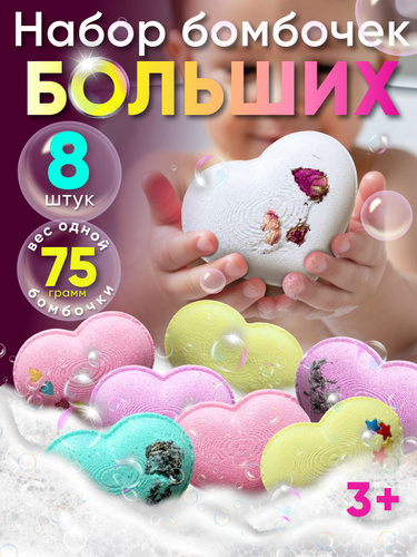 Бомбочки для ванны. Набор больших сердечек 8 штук