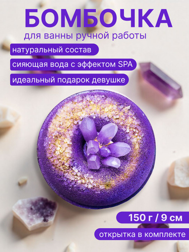 Ароматная бомбочка для ванны Аметист с шиммером Большой размер Подарок для неё