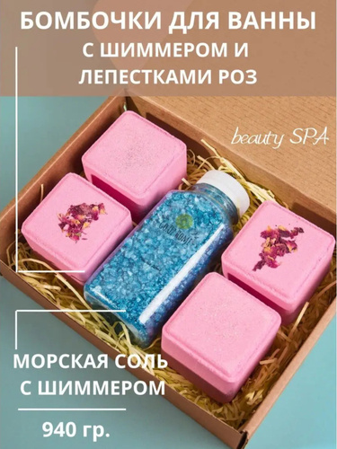 СПА набор подарочный - большие бомбочки и соль для ванн с шиммером