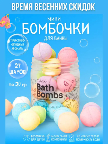 Мини бомбочки для ванны бурлящие из морской соли с экстрактом фруктового микса 27 штук