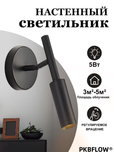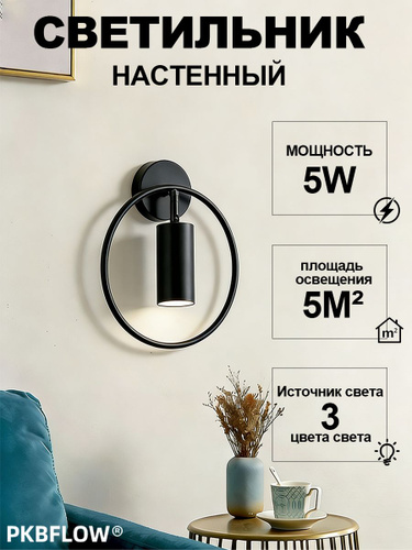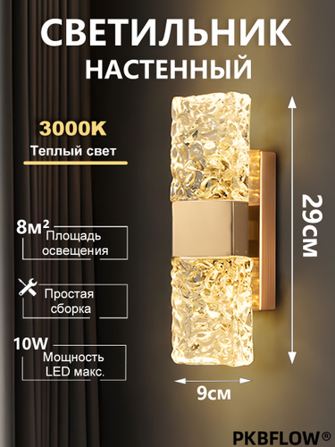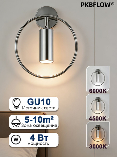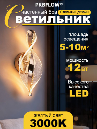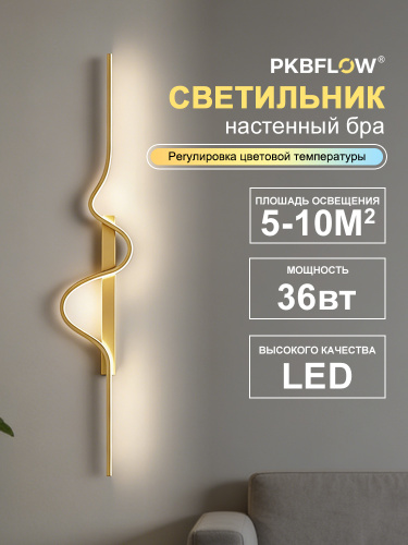 PKBFLOW Светильник настенный бра, декоративная лампа, для спальню, на кухню, в гостиную, чувство дизайна, 3000K, 12Вт