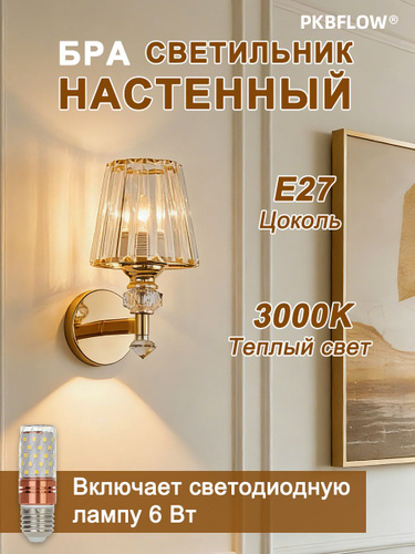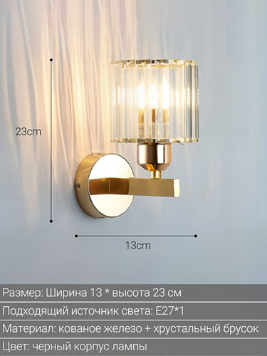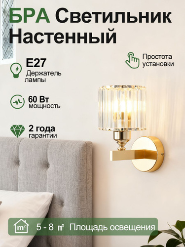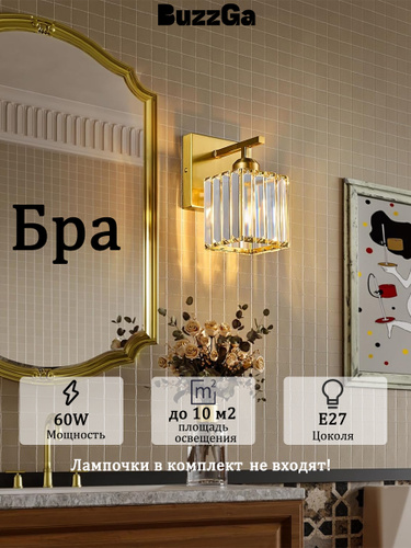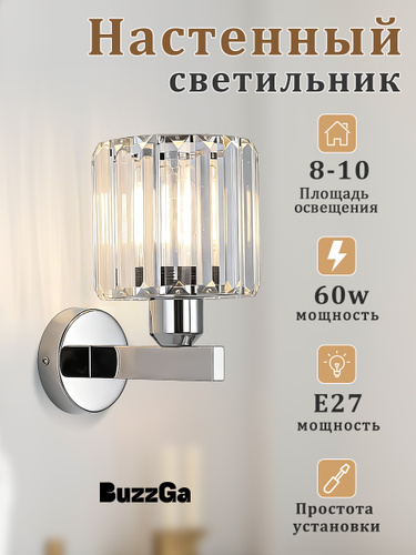 BuzzGa Настенный светильник, хрустальный бра лофт, в спальню, на кухню, в гостиную, в зал, в детскую комнату. Цоколь E27