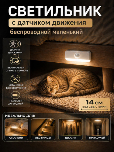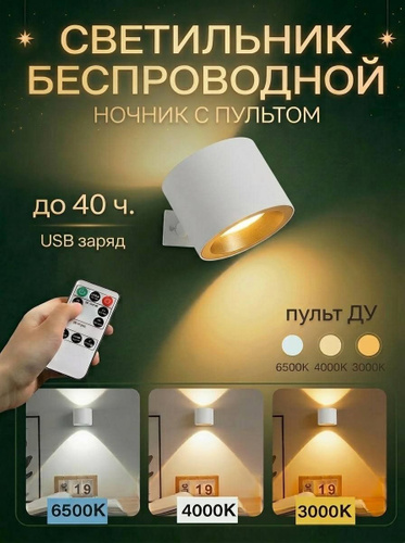 Светильник настенный, светодиодный, беспроводной с пультом ДУ и ночником. LED бра с аккумулятором. Спот на магните с лампой на стену, прикроватный для спальни и гостиной