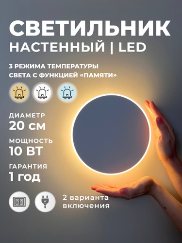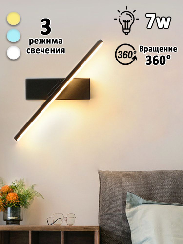 Светильник настенный светодиодный/3 режима света/10Вт/Бра прикроватный 20 см