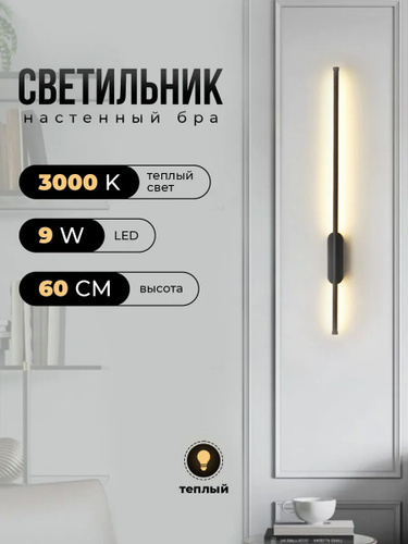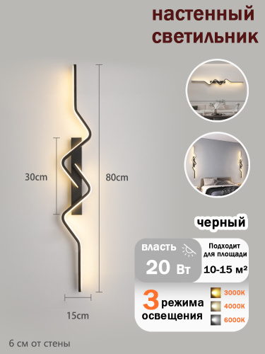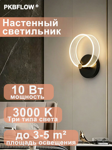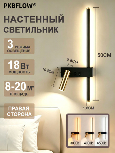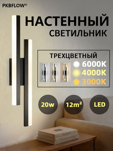 PKBFLOW Светильник настенный светодиодный, бра 20W, черный 50 см трехцветный