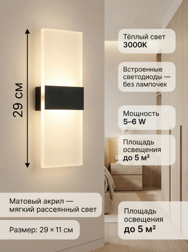 Бра/светильник настенный светодиодный/бра настенные с выключателем,3000K ,6 Вт