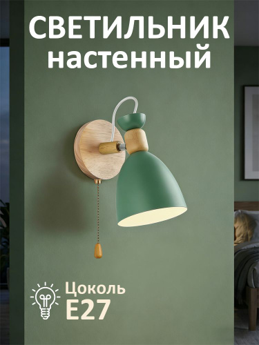 бра настенные, светильник настенный, с выключателем, цоколь Е27, Зеленый