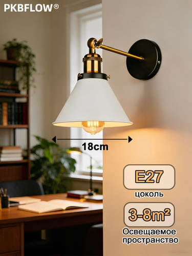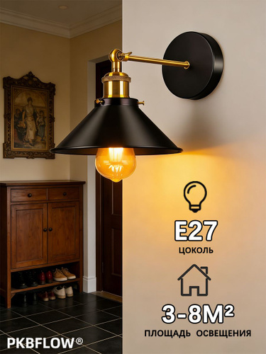 PKBFLOW Бра настенный, Настенный светильник лофт для спальни и гостиной, E27