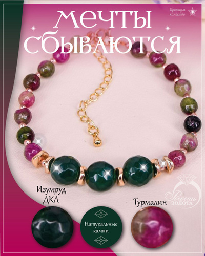 Браслет из Изумруда дкл и Турмалина/Браслет из натуральных камней