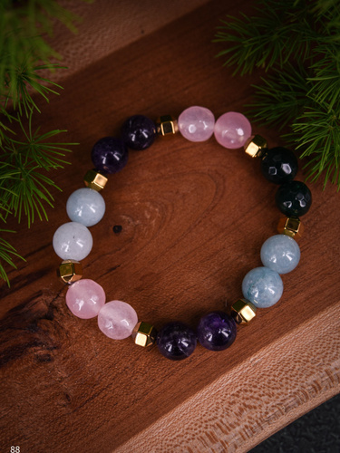 Браслет аметист аквамарин розовый кварц изумруд дкл / Браслет из натуральных камней