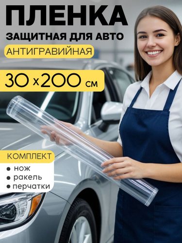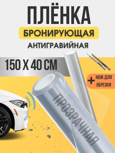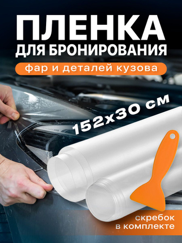 Прозрачная бронировочная пленка, для фар 0.3м х 1,5 м + ракель + нож