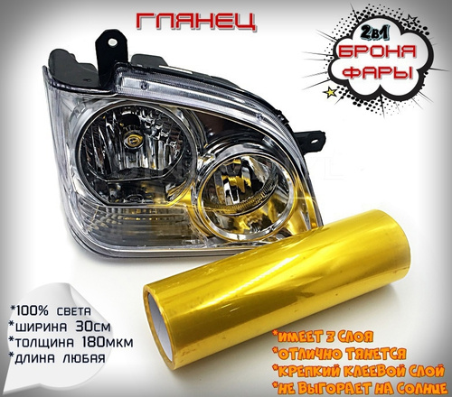 Пленка 2в1 защитная в броне для фар, Автомобильная пленка для тонировки фар, желтая (50 х 30 см)