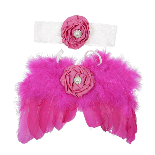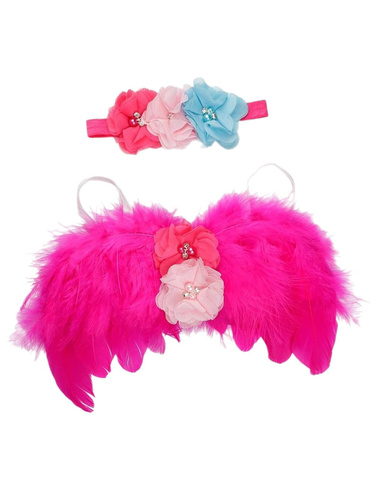 (набор) Головная повязка для фотосессии с перьями и крыльями - ярко-розовый