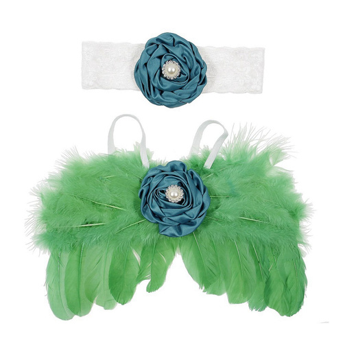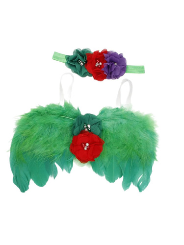 Набор для фотосессии: головной убор с перьями и крыльями - зеленый