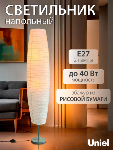 Торшер напольный, под две лампы с цоколем E27, UNIEL, UML-T410 2хE27 WHITE, светильник напольный, механический выключатель. Белый.