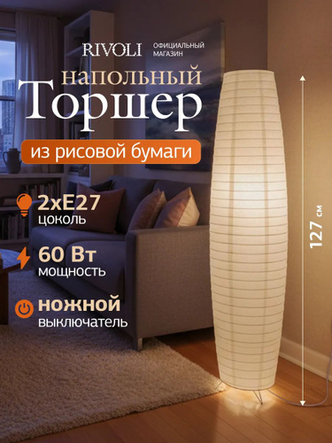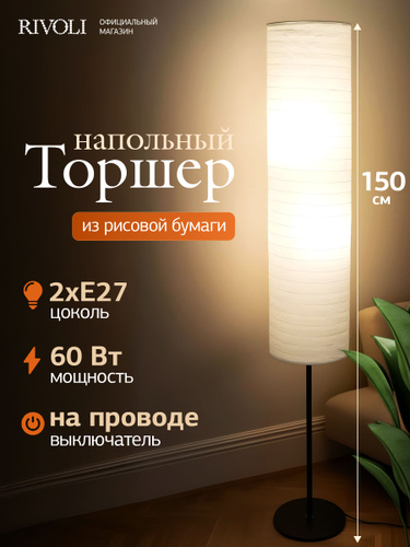 Торшер светильник напольный Rivoli Andreea с абажуром из рисовой бумаги 127 см Е27