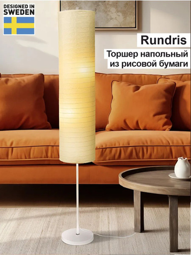 VICKLEBY ВИККЛЕБИ Напольный светильник IKEA Торшер, высота 136 см, абажур 33 см, рисовая бумага