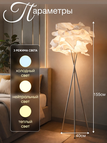 Напольный Светильник, С Абажуром Из Рисовой Бумаги И Металлическим Штативом, Светодиод