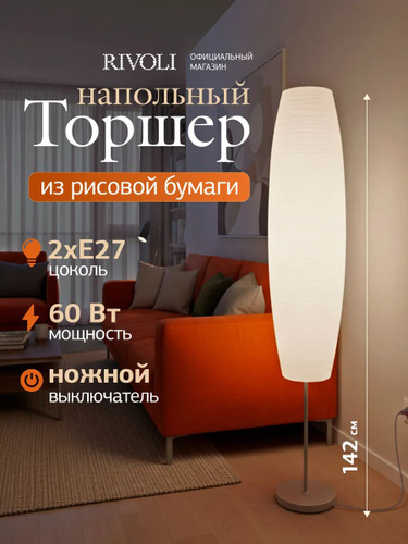 Торшер светильник напольный Rivoli 2 х Е27 60 Вт черный, белый
