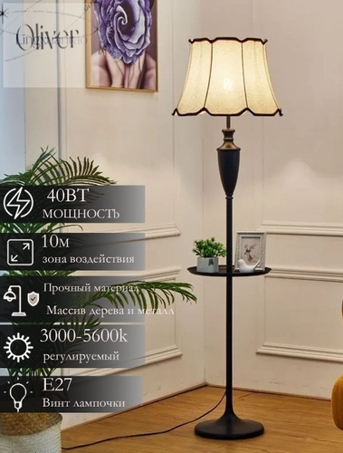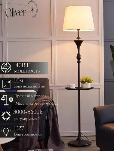 Oliver Light торшер напольный со столиком, регулировка яркости и цвета,С белым абажуром,E27