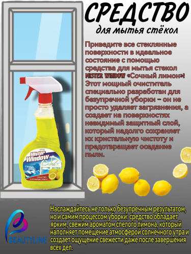 Средство для мытья стекол MISTER WINDOW "Сочный лимон" 500мл