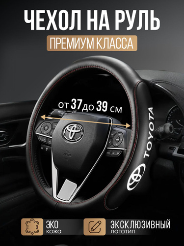 Премиальная оплетка на руль Toyota / Тойота (Форма Круглый Размер М) Чехол на руль 37-39см