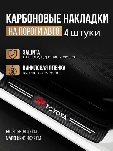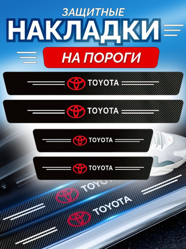 Накладки на пороги для Toyota Corolla , Camry , C-HR , RAV4 , Highlander ; Fortuner ; Land Cruiser 200 ; Wish / Защитная пленка наклейки для защиты порогов Тойота / Комплект 4шт