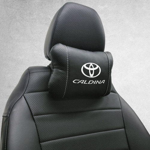 Подушка на подголовник авто с логотипом Toyota Caldina. Тюнинг салона для тойота калдина 190. Аксессуар дополняющий коврики и чехлы для Toyota Caldina. Подойдет для тойота калдина 210 и 241