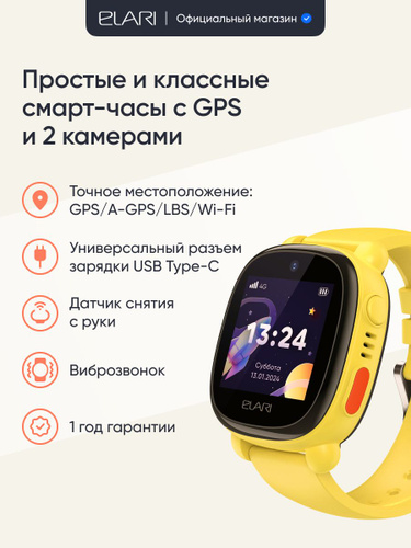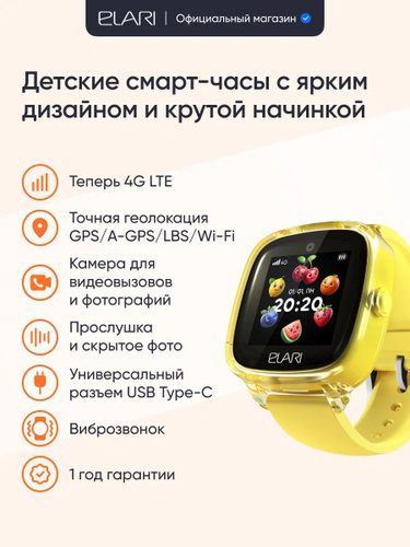 Часы с GPS трекером Elari 4G Lite Yellow