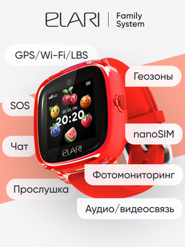 ELARI Детские смарт часы KidPhone Fresh 4G c GPS трекером, прослушка, скрытое фото обстановки, видео и аудио звонки, кнопка SOS, USB Type-C зарядка, цвет красный