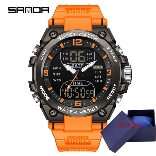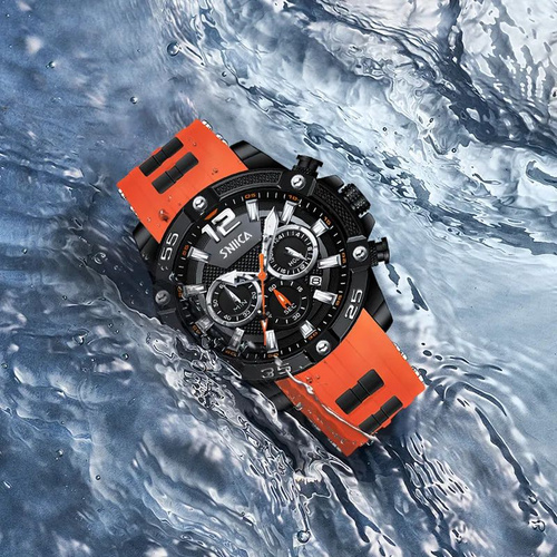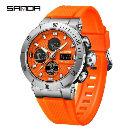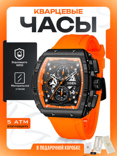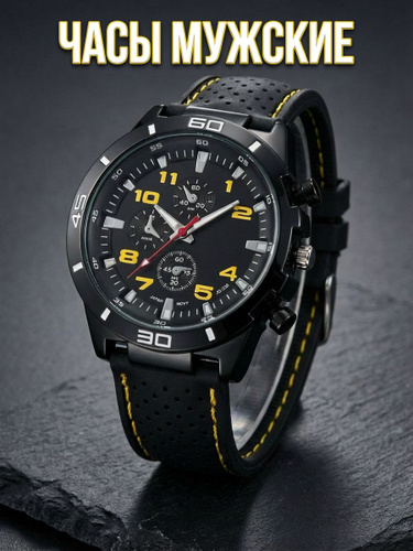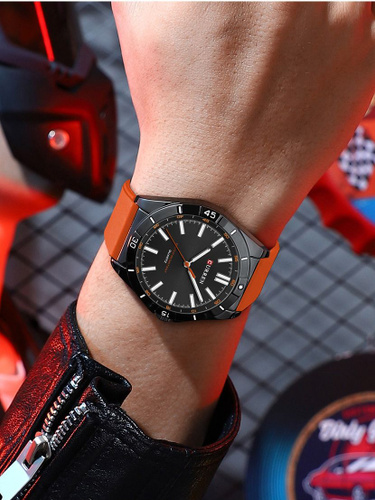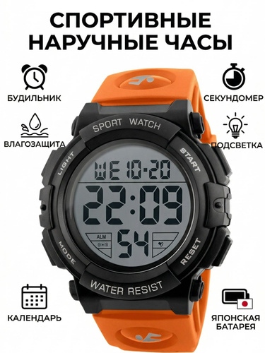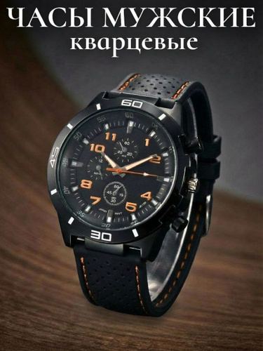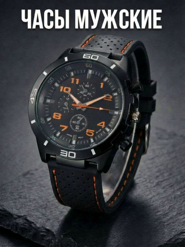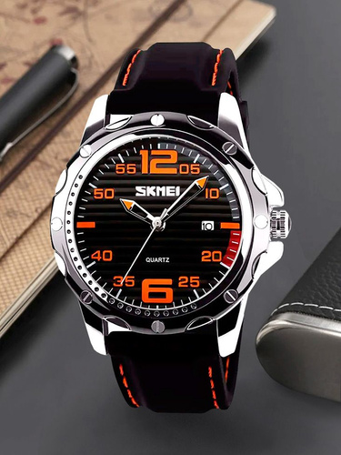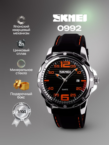 Часы мужские наручные SKMEI кварцевые, классические, черные/оранжевые