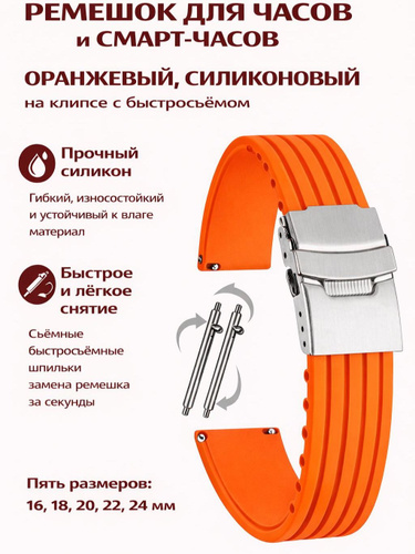 Ремешок для часов и смарт часов 20 мм, мужской, каучуковый, оранжевый, SmartFactory