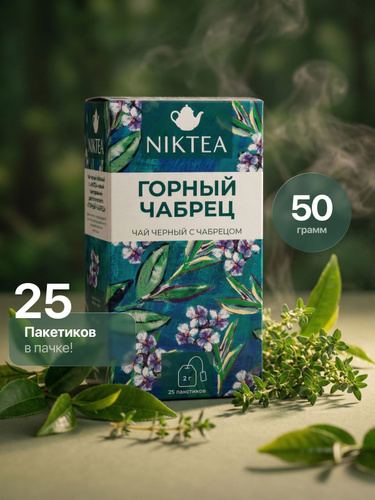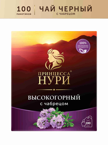 Черный чай в пакетиках Принцесса НУРИ Высокогорный с чабрецом, 100 пакетиков
