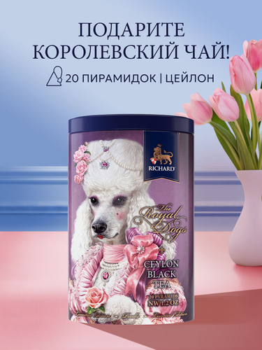 Чай в пакетиках Richard "Royal Dogs. Poodle", классический черный чай в пирамидках, 20 пирамидок в жестяной банке подарочный, Ричард