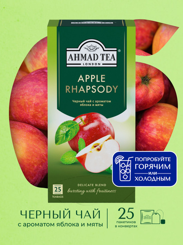 Чай в пакетиках чёрный Ahmad Tea Apple Rhapsody, 25х1,5г