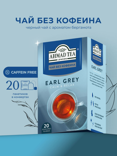 Чай Эрл Грей черный в пакетиках без кофеина "Ahmad Tea", 20х1.8г