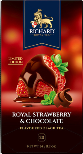 Чай RICHARD Royal клубника с шоколадом, черный 20 сашет, подарочная упаковка