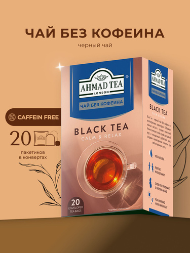 Чай черный в пакетиках без кофеина "Ahmad Tea", 20х1.8г