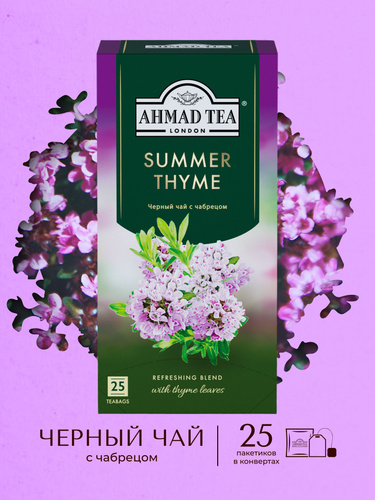 Чай в пакетиках чёрный c чабрецом Ahmad Tea Summer Thyme, 25х1,5г