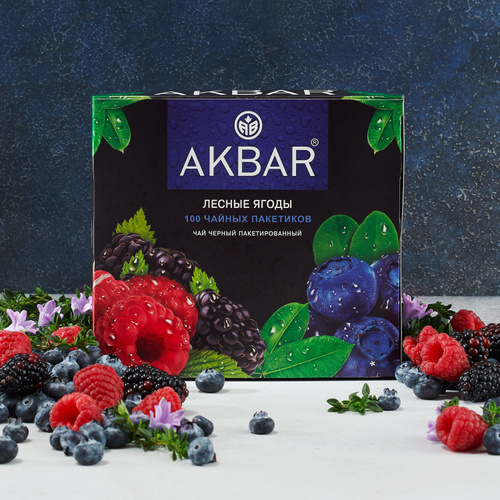 Akbar черный чай в пакетиках Лесные Ягоды, 100 пак.