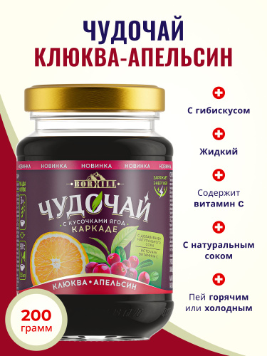 Чайный напиток клюква-апельсин, растворимый Чудочай Borhill, жидкий экстракт 200 г.