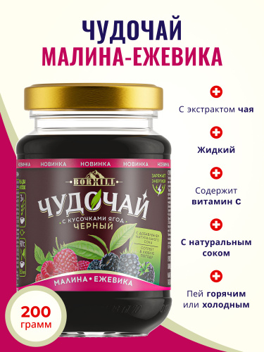 Чайный напиток малина-ежевика, растворимый Чудочай Borhill, жидкий экстракт 200 г.
