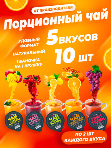 Чай порционный SimpaTea микс из 5 вкусов Манго-маракуйя, Облепиха с апельсином, Имбирь-лимон, Брусника-каркаде, Глинтвейн 10 шт по 45 г