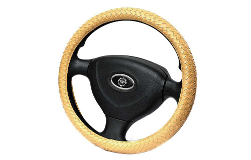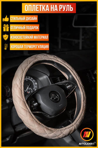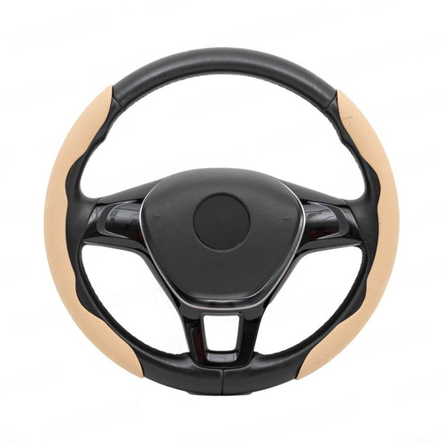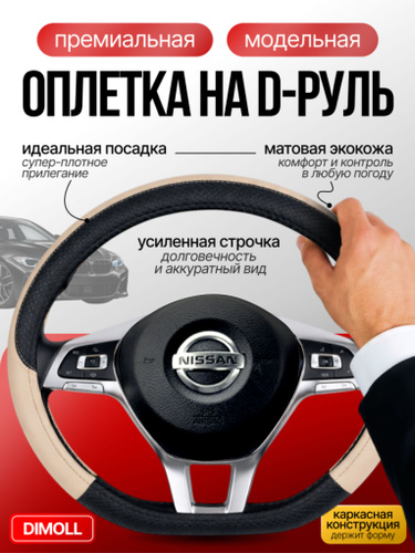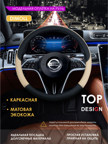 Оплетка (чехол) на руль 37-38 см каркасная Nissan X-Trail (T32) 2013 - наст. время экокожа, бежевая, черная вставка