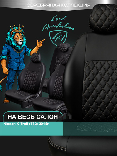 Чехлы на сиденья Ниссан Икс - Треил - 2 Т31 Лорд Авто 5 мест с 2007 - 2015 Кроссовер / Nissan X-Trail - 2 T31 ( спинка заднего ряда 60/40 раздельная ), экокожа черные бежевые Турин Ромб